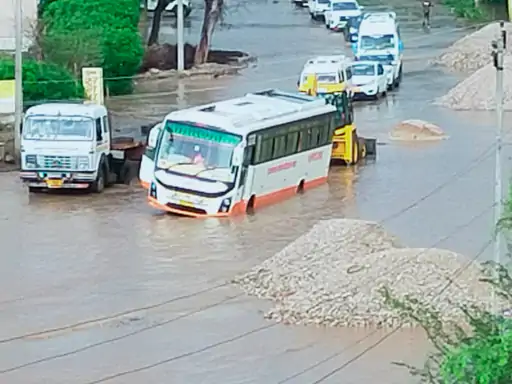 नेछवा में सीकर-सालासर रोड पर जलभराव:कलेक्टर से मिला था सड़क निर्माण का भरोसा, पानी में फंसे वाहन