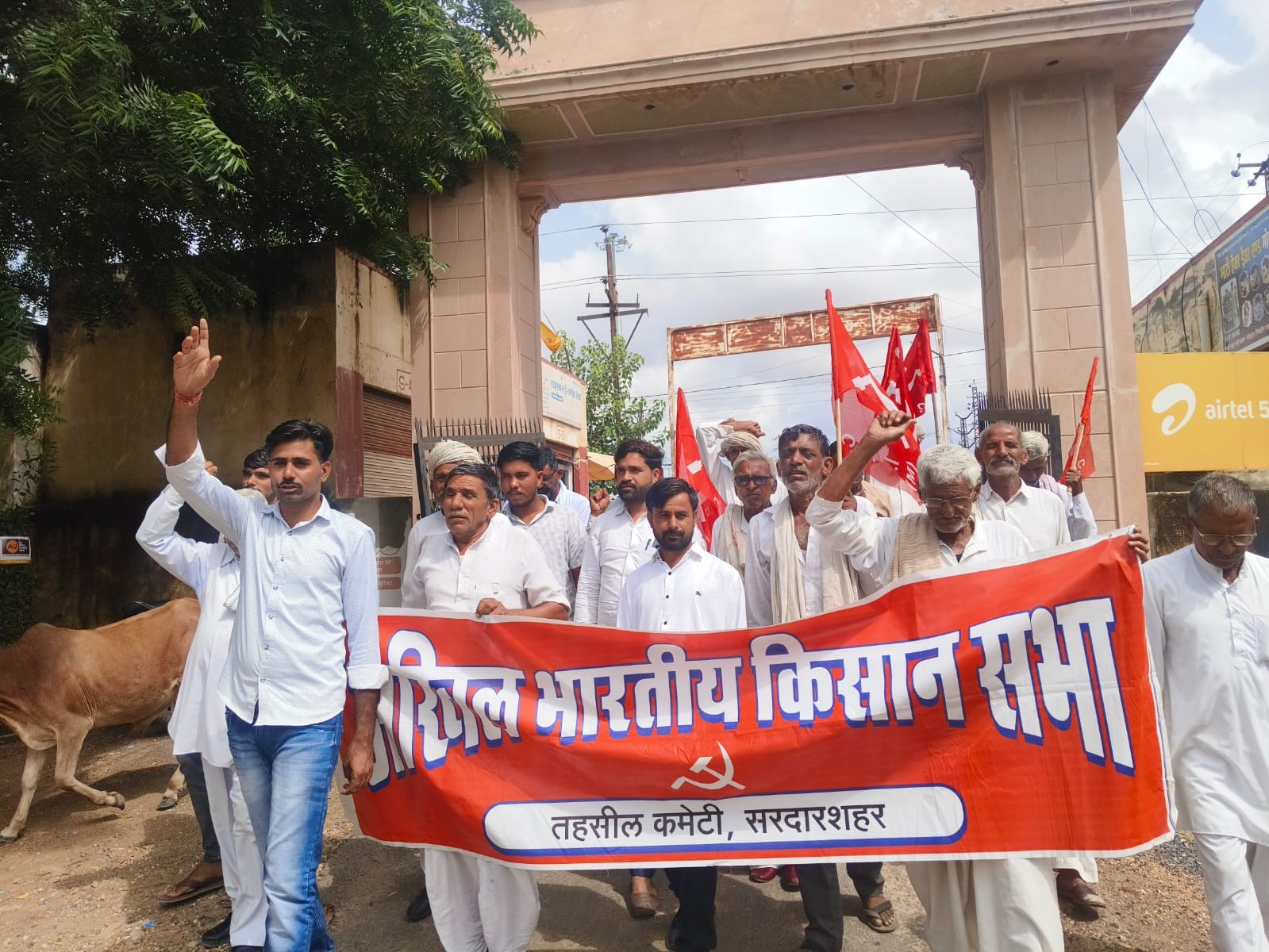 ज्ञापन सौंपते समय अमिलाल मुंड, कुमाराम जाखड़, मोहलनलाल, हजारीराम सारण, नंदराम जाखड़, संदीप भारतीय, लीलाधर मेघवाल, मामराज शर्मा, महावीर बेनीवाल, दुलाराम सारण सहित सैकड़ों की संख्या में किसान सभा के कार्यकर्ता मौजूद रहे।