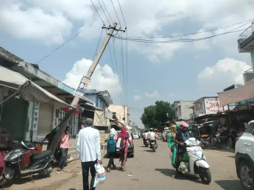 सिंघाना बाजार में बिजली का पोल गिरने की कगार पर:व्यापारी चिंतित, विभाग ने तीन दिन से नहीं की मरम्मत