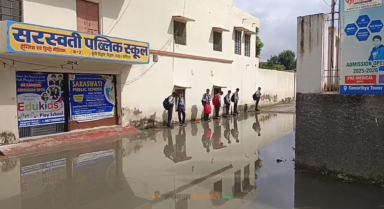 नीमकाथाना : सीकर जिले के नीमकाथाना में बारिश के बाद कई कॉलोनी में जल भराव की समस्या देखने को मिल रही है जिससे लोगों को काफी परेशानियों का सामना करना पड़ रहा है वार्ड नंबर 1 में बारिश के बाद जल भराव की समस्या होने से वाहन चालकों और आम जन को काफी परेशानियों का सामना करना पड़ रहा है यहां एक निजी स्कूल के बाहर जल भराव की समस्या होने से स्कूल के बच्चों को काफी दिक्कतों का सामना करना पड़ रहा है समस्या को लेकर कई बार अधिकारियों को भी अवगत कराया लेकिन कोई समाधान नहीं हुआ स्कूल संचालक ने भी आक्रोश जताते हुए कहा कि अगर 2 दिन में समस्या का समाधान नहीं हुआ तो गंदे पानी में बैठकर धरना देकर विरोध प्रदर्शन करेंगे।