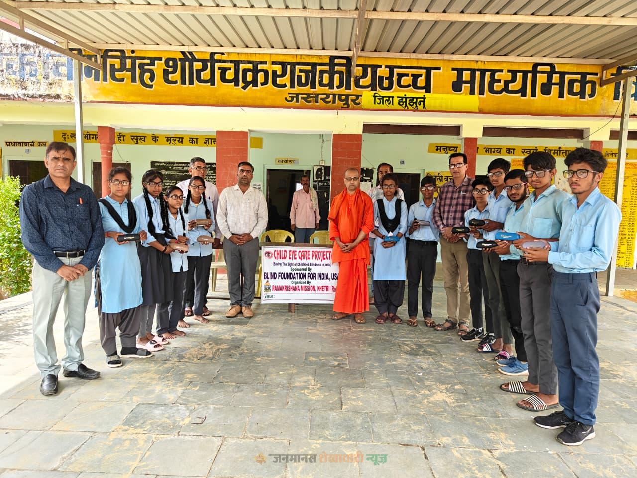 रामकृष्ण मिशन खेतड़ी का नेत्र जांच अभियान: जसरापुर में राजकीय एव निजी विद्यालयों के 81 विद्यार्थियों को नि:शुल्क चश्मे वितरित किये