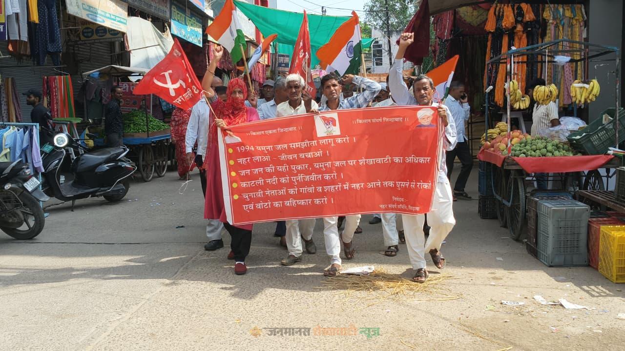 चिड़ावा में किसानों ने निकाली रैली:10 सूत्रीय मांगों को लेकर एसडीएम को सौंपा ज्ञापन, उचित मुआवजा देने की मांग