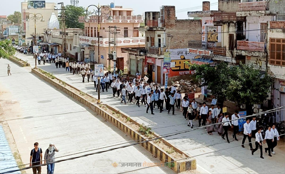 जन-जागरूकता रैली को जिला कलेक्टर डॉ. अरुण गर्ग, विधायक विक्रम सिंह जाखल, एडीईओ उम्मेद सिंह महला, नवलगढ़ सीआई राधेश्याम सांखला, श्रीकांत मुरारका, समाजसेवी कैलाश चोटिया, रवीन्द्र पुरोहित, मुरली चोबदार, ओमप्रकाश सैन, निदेशक डॉ. विनोद कुमार सैनी, प्राचार्य डॉ. सत्येन्द्र सिंह, डॉ. दुर्गा भोजक, एस.एस. बक्शी, जीन सी.के. और डॉ. पूजा पंवार सहित सभी हेड्स ने हरी झंडी दिखाकर रवाना किया।