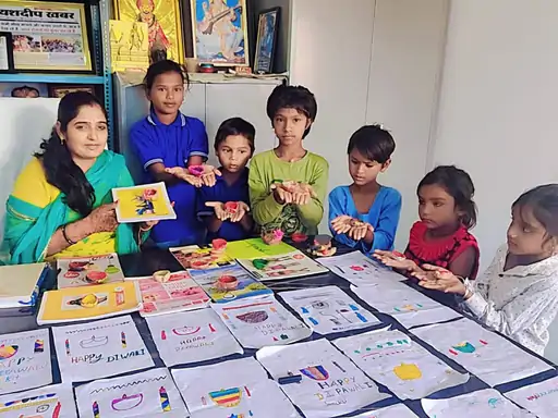 चिड़ावा में बच्चों ने बनाए दीपक और पेंटिंग:छात्रों को पढ़ाई के साथ सांस्कृतिक और रचनात्मक गतिविधियों से जोड़ा