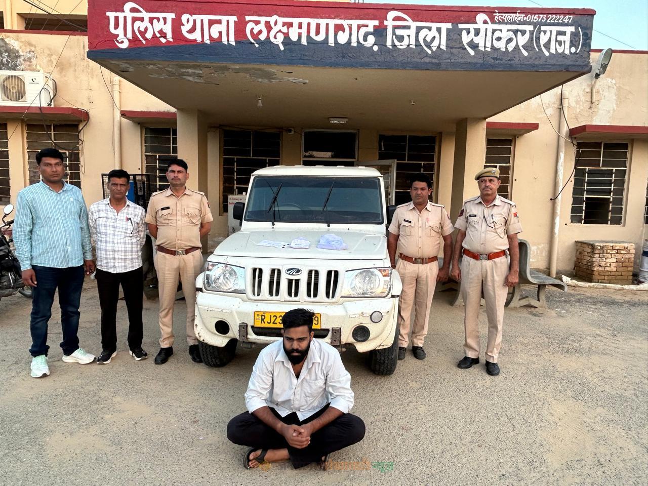लक्ष्मणगढ़ : सीकर जिले के लक्ष्मणगढ़ थाना पुलिस ने नाकाबंदी के दौरान फतेहपुर सालासर रोड़ पर पिकअप गाड़ी की तलाश में अवैध मादक पदार्थ के साथ एक जने को गिरफ्तार किया है। लक्ष्मणगढ़ थानाधिकारी महेंद्र सिंह ने बताया कि सालासर फतेहपुर रोड़ पर पुलिस गश्त कर रही थी। इसी दौरान संदिग्ध हालात में एक पिकअप गाड़ी खड़ी थी। पुलिस ने गाड़ी को चैक करना चाहा तो चालक गाड़ी लेकर भागने की कोशिश की जिस पर पुलिस ने चालक को पकड़कर गाड़ी की तलाशी ली तो गाड़ी में 54 ग्राम अवैध मादक पदार्थ स्मैक पाउडर बरामद किया गया साथ ही स्मैक पाउडर विक्रय के लिए प्रयुक्त फॉयल पेपर, रबर बैंड, प्लास्टिक पन्निया, डिजिटल कांटा, ओर नशा करने में प्रयुक्त जले हुए नोट व स्मैक बिक्री के 3800 रूपये पिकअप चालक भोजासर निवासी प्रदीप सिंह से बरामद किए गए। महेंद्र सिंह ने बताया कि पुलिस ने एनडीपीएस एक्ट में मामला दर्ज कर जांच बलारां थानाधिकारी को सोपी है।