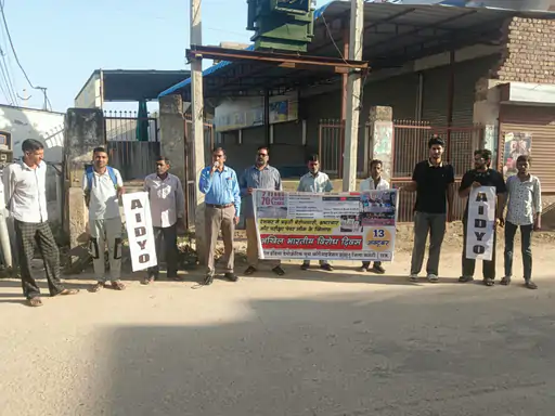 एआईडीवाईओ ने पिलानी में विरोध प्रदर्शन किया:बेरोजगारी, भ्रष्टाचार और पेपर लीक पर सरकार से कार्रवाई की मांग