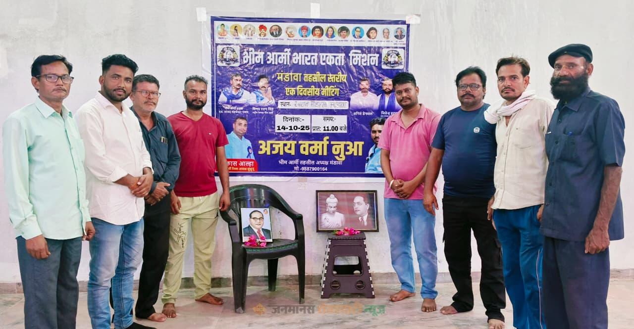 मंडावा : भीम आर्मी भारत एकता मिशन के तत्वावधान में मंडावा में एक बैठक का आयोजन किया गया, जिसकी अध्यक्षता भीम आर्मी तहसील अध्यक्ष अजय वर्मा नुआ ने की। बैठक में निर्णय लिया गया कि कल झुंझुनू में अंबेडकर पार्क से जिला कलेक्ट्रेट तक निकलने वाली विशाल रैली और विरोध प्रदर्शन में भीम आर्मी मंडावा टीम भी सक्रिय रूप से भाग लेगी।