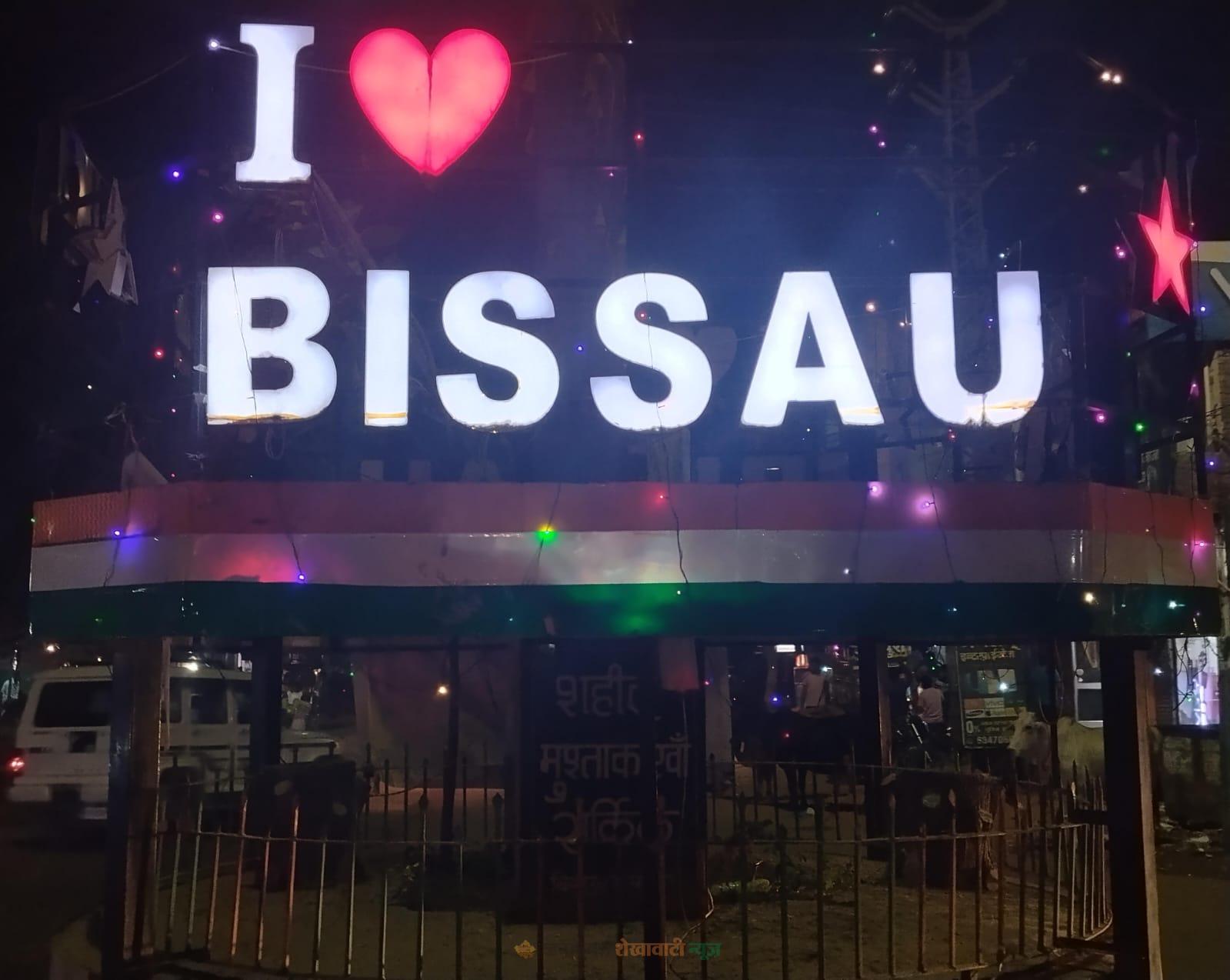 दिपावली के त्यौहार पर शहीद मुश्ताक खां सर्किल पर पालिका ने आई लव बिसाऊ सल्फी प्वाइंट सही करवाया