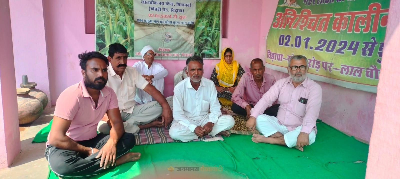 चिड़ावा में किसान धरना 656वें दिन जारी:यमुना जल समझौते की मांग पर प्रताप भास्कर क्रमिक अनशन पर बैठे