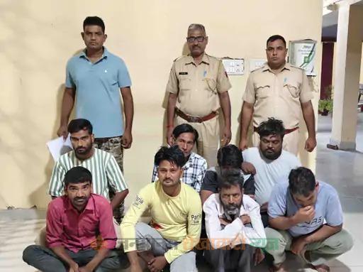 बीदासर : बीदासर पुलिस ने अवैध जुआ गतिविधियों के खिलाफ देर रात बड़ी कार्रवाई की। पुलिस ने झंडी-मंडी का जुआ खेलते हुए 14 लोगों को रंगे हाथों गिरफ्तार किया। यह कार्रवाई थाना अधिकारी मुकुट बिहारी मीणा के नेतृत्व में की गई, जिसमें पुलिस टीम ने विभिन्न सार्वजनिक स्थानों पर दबिश दी। पुलिस ने मौके से ₹33,970 नकद राशि और जुआ खेलने में इस्तेमाल होने वाली सामग्री बरामद की। गिरफ्तार किए गए लोगों में एक भाजपा पार्षद भी शामिल है।