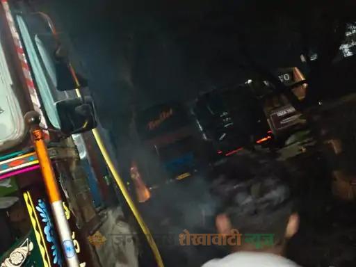 फतेहपुर : फतेहपुर में बीकानेर हाईवे पर शनिवार रात 11 बजे नारियल से भरे एक ट्रक में आग लग गई। यह हादसा सदर थाना के पास स्थित एक पेट्रोल पंप पर हुआ, जब एक जलता हुआ पटाखा ट्रक पर आ गिरा। जानकारी के अनुसार, फतेहपुर से बीकानेर की ओर जा रहा यह ट्रक पेट्रोल पंप पर खड़ा था। तभी एक ‘आकाश तारा’ पटाखा जलता हुआ ट्रक के ऊपर गिरा, जिससे धीरे-धीरे आग फैल गई।