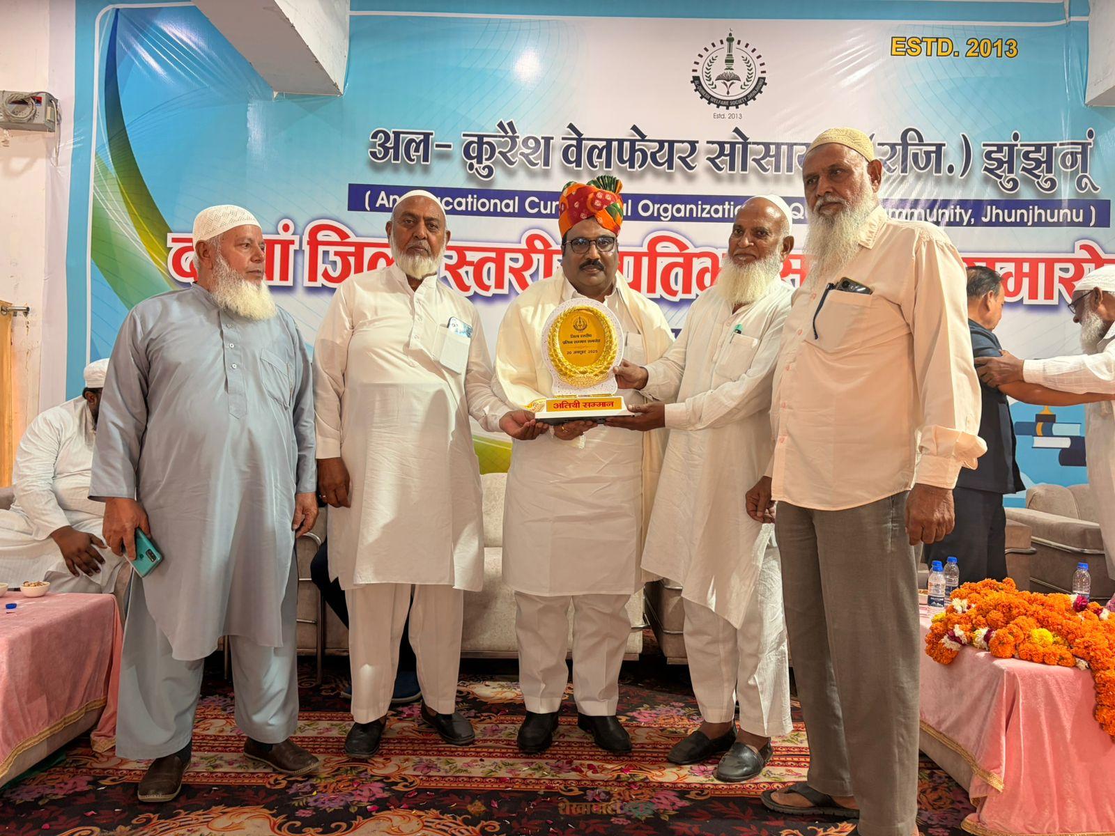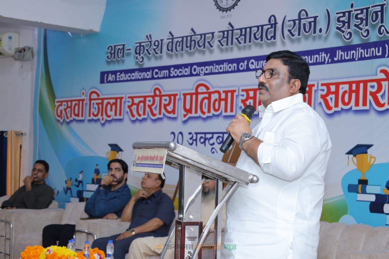 झुंझुनूं : अंबेडकर भवन, झुंझुनूं में रविवार को अल कुरैश वेलफेयर सोसाइटी की ओर से दसवां प्रतिभा सम्मान समारोह बड़े उत्साह और जोश के साथ आयोजित किया गया। कार्यक्रम में बतौर मुख्य अतिथि शिरकत करते हुए वक्ता ने कहा कि “मेरा बचपन कुरैशी बिरादरी में बीता है, और आज इस समाज को शिक्षा के क्षेत्र में आगे बढ़ते देख गर्व महसूस होता है।”