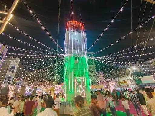 सुजानगढ़ का घंटाघर तिरंगे रंग में सजा:सजावट देखने उमड़ी भीड़, विधायक ने की रामा श्यामा