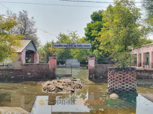 सुजानगढ़ पशु अस्पताल दो माह से जलमग्न:गौशाला से हो रहा संचालन, नगर परिषद पर अनदेखी का आरोप