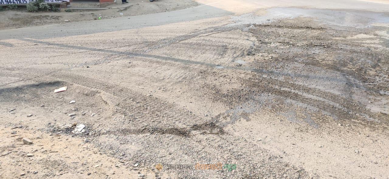 सड़क पर बने गड्ढों और उड़ती धूल के कारण ग्रामीण दुकानदार और राहगीर परेशान,तीन दिन में सुधार नहीं हुआ तो ग्रामीण करेंगे नेशनल हाइवे जाम