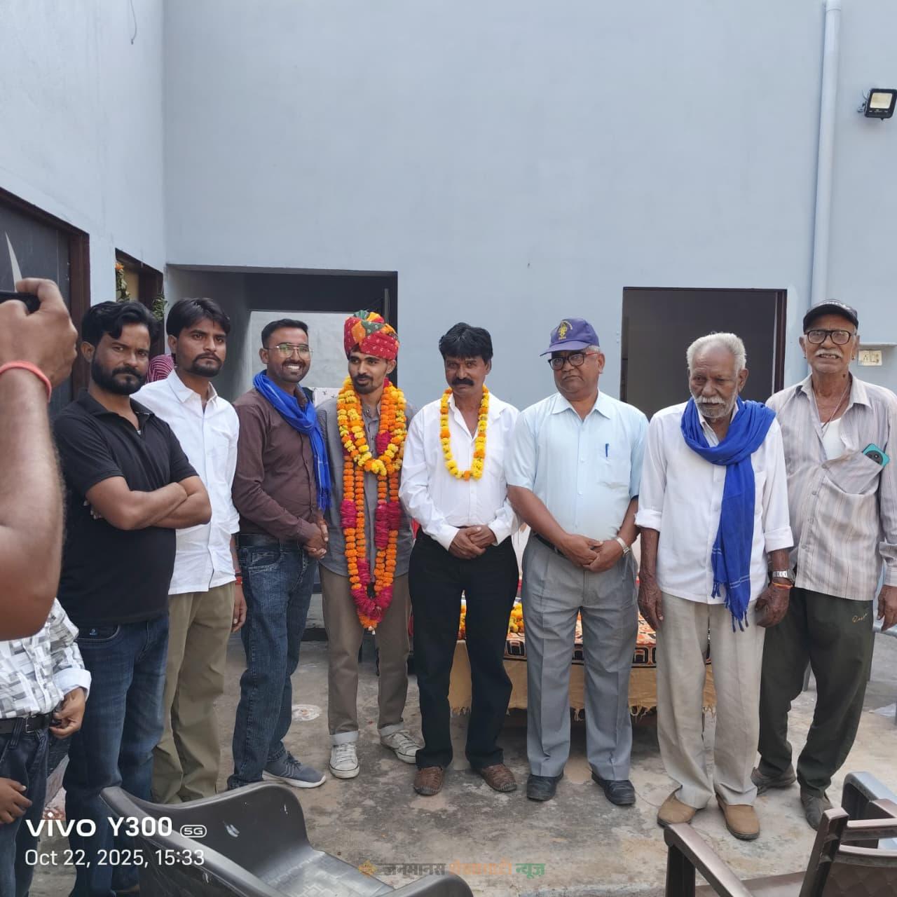 नवलगढ़ : बाल्मीकि बस्ती में बुधवार को परसरामपुरा निवासी आकाश अठवाल पुत्र उदय अठवाल का राजस्थान प्रशासनिक सेवा (RAS) परीक्षा 2023 में चयनित होने और नवलगढ़ आगमन पर समाज के लोगों द्वारा एक सम्मान समारोह आयोजित किया गया। इस अवसर पर, मुख्य अतिथि आकाश अठवाल का समाज के लोगों ने गर्मजोशी से स्वागत किया। उन्हें पुष्पाहार पहनाकर और साफा बांधकर सम्मानित किया गया, जो उनके गौरवपूर्ण उपलब्धि के प्रति समाज के सम्मान को दर्शाता है। कार्यक्रम में, आकाश अठवाल के पिता, उदय अठवाल का भी विशेष सम्मान किया गया, जिनके संघर्ष और प्रोत्साहन को इस सफलता का आधार माना गया।
