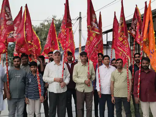 खेतड़ी के बबाई से 51 निशानों की बूढधाम यात्रा शुरू:शहरवासियों ने श्रद्धालुओं पर की पुष्प वर्षा, शुक्रवार से वार्षिक मेले का शुभारंभ