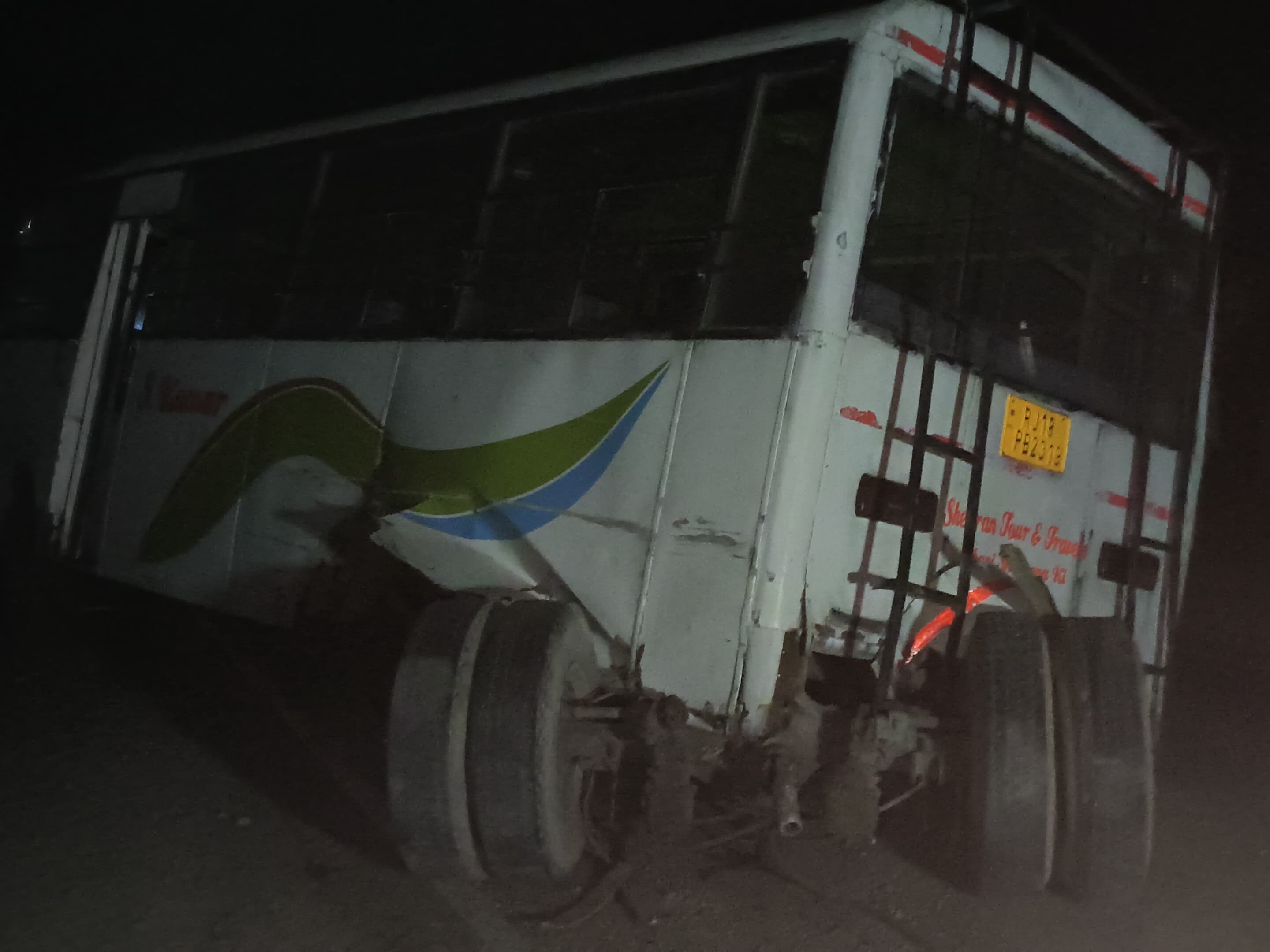 चिड़ावा-मंड्रेला रोड पर चलती बस के टायर निकले:एक्सेल टूटने के बाद 100 फीट तक घिसटती गई, स्पीड कम होने से रुकी