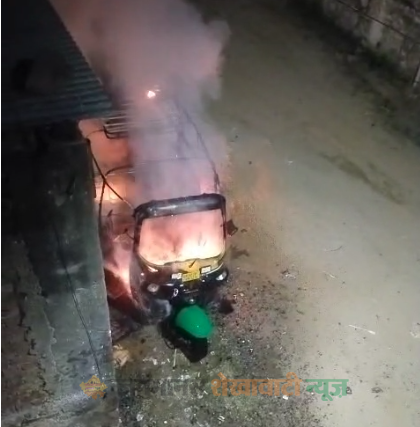 अज्ञात युवक ने मकान के बाहर खड़े टैम्पो में लगाई आग, क्षेत्र में फैली सनसनी