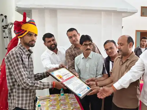 RPSC में चयनित भवानीशंकर सुथार का सम्मान:गजरूप ग्लोबल क्रिएशन व शिव मार्केट के व्यापारियों ने किया सम्मानित