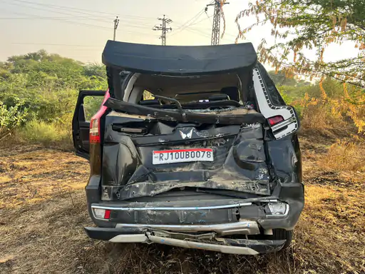 भाजपा जिला उपाध्यक्ष की गाड़ी दुर्घटनाग्रस्त:चूरू रोड पर बस ने मारी टक्कर, चेहरे पर आई हल्की चोट
