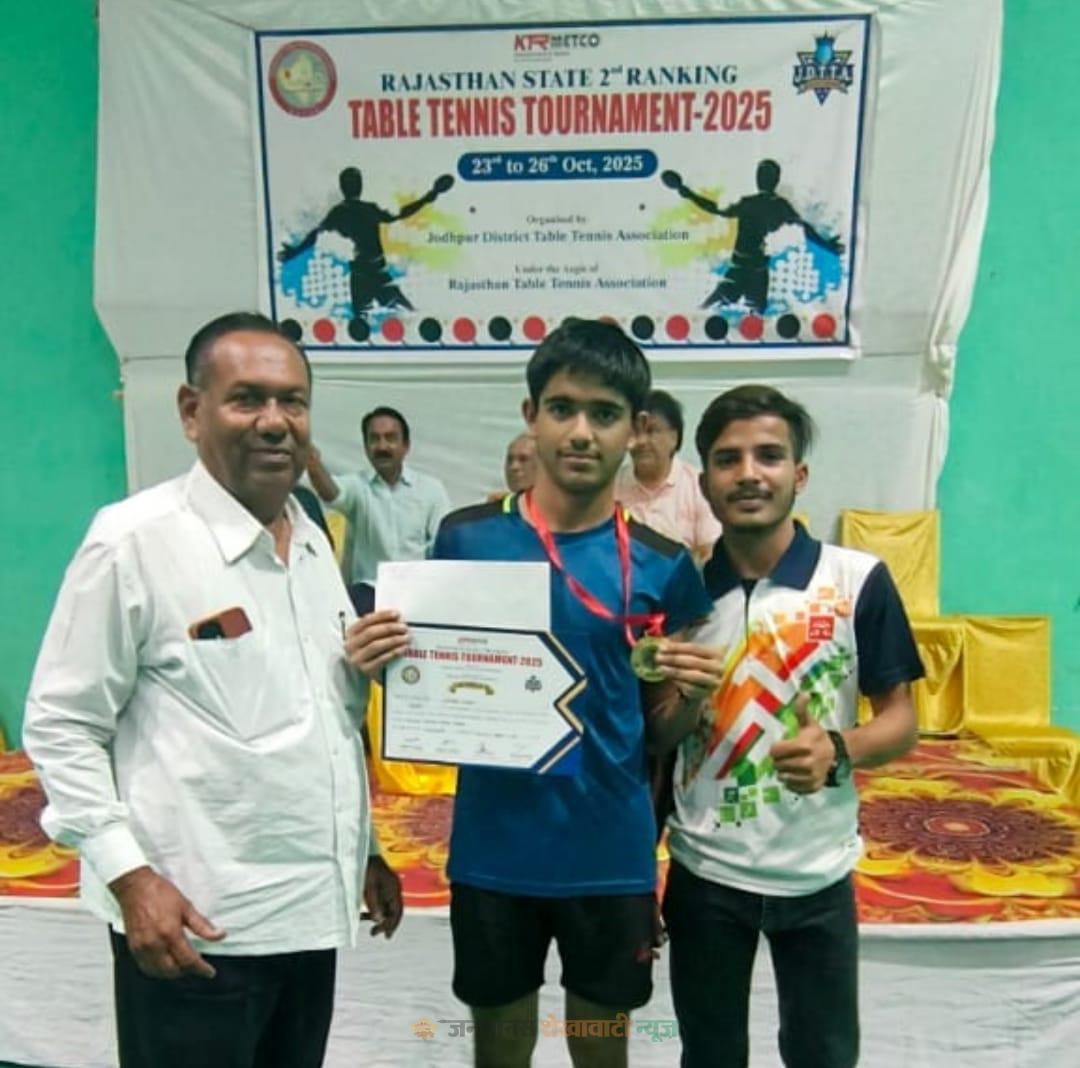 चूरू : जिला मुख्यालय पर केंद्रीय विद्यालय, चूरू की कक्षा 9 के होनहार छात्र सेजान खान ने, खेल के क्षेत्र में चूरू का और समाज का नाम रोशन किया है। 23 से 26 अक्टूबर 2025 के बीच, जोधपुर में आयोजित, राजस्थान स्टेट रैंकिंग, टेबल टेनिस टूर्नामेंट,2025 में, सेमी फाइनल में, जयपुर के नैतिक वीर को, 3-0 से तथा फाइनल मुकाबले में, जयपुर के ही, प्रो स्टार अकैडमी के, प्रखर बाघ को 3-1 से शिकस्त देकर स्टेट लेवल का गोल्ड मेडल अपने नाम कर लिया। सेजान खान, अध्यापक समीर खान के पुत्र और रिटायर्ड प्रिन्सिपल नजीर मोहम्मद खान का पोता है। परिवार और समाज को, इस कामयाबी पर नाज़ है। शौकत खान झारिया रिटायर्ड जीएसटी कमिश्नर ने शुभकामनाएं और उज्जवल भविष्य की दुआ करते हुए कहा , फानुश बन कर जिसकी हिफाज़त हवा करे,