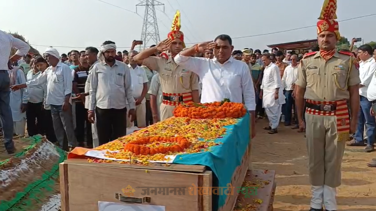 देर रात दो बजे जवान की पार्थिव देह तिरंगे में लिपटी रींगस थाने पहुंची। सुबह गांव पहुंचने पर “मुकेश गुर्जर अमर रहे”, “वंदे मातरम” और “भारत माता की जय” के नारे गूंज उठे। गांव के हर घर की आंखें नम थीं।