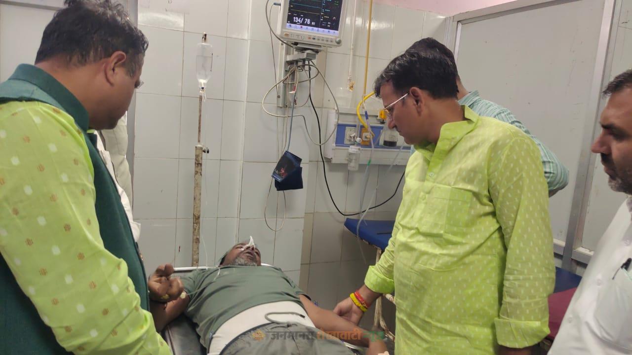 लक्ष्मणगढ़ : सीकर में लक्ष्मणगढ़ के बीजेपी मंडल अध्यक्ष पर दो बदमाशों ने जमीन दिखाने के बहाने हमला किया। उनकी गाड़ी के शीशे तोड़ दिए। फिर जबरदस्ती जहर पिला दिया। इस बीच सड़क पर 2 कारें आईं तो आरोपी मौके से फरार हो गए। घटना लक्ष्मणगढ़ के हमीरपुरा रोड की बुधवार दोपहर करीब 12 बजे की है। बीजेपी नेता ललित पंवार को गंभीर हालत में एसके हॉस्पिटल में भर्ती करवाया गया। जहां उनका इलाज चल रहा है। लक्ष्मणगढ़ SHO महेंद्र सिंह ने बताया- अभी तक इस मामले में कोई रिपोर्ट दर्ज नहीं की गई है। रिपोर्ट मिलने के बाद मुकदमा दर्ज कर जांच की जाएगी। फिलहाल पुलिस घटनास्थल के आसपास के सीसीटीवी फुटेज खंगाल रही है।