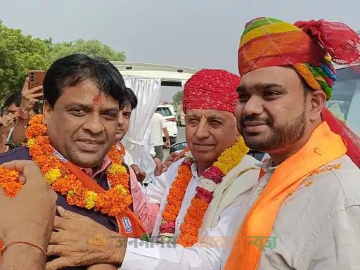 चिड़ावा पहुंचने पर केंद्रीय मंत्री भागीरथ चौधरी का स्वागत:निकाय चुनाव पर कहा- कार्यकर्ता आपसी मतभेद भुलाकर एकजुट होकर काम करें