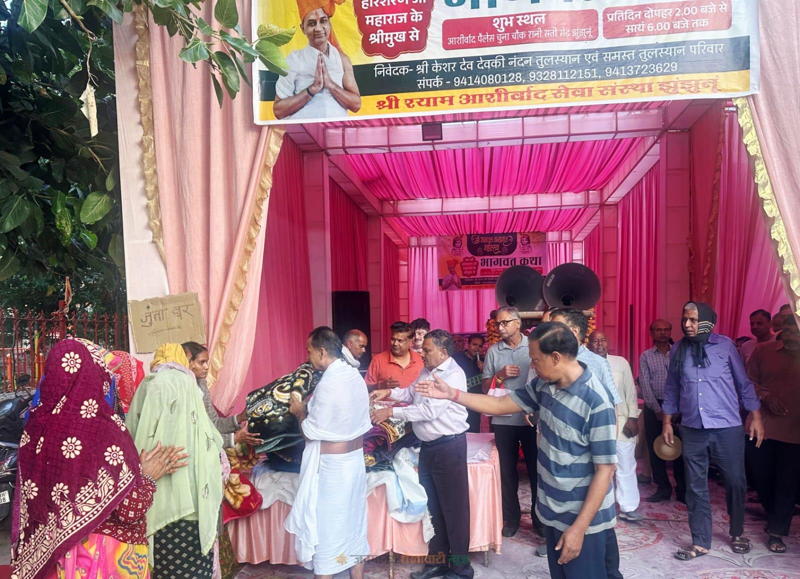 श्रीमद्भागवत कथा के दौरान सेवा कार्यों की श्रृंखला में ज़रूरतमंदों को कंबल व भोजन वितरण