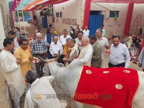 पिलानी गौशाला में गोपाष्टमी उत्सव, शेड का अनावरण किया:श्रद्धालुओं ने गौ माता का पूजन कर खिलाया हरा चारा, गुड़ और दलिया