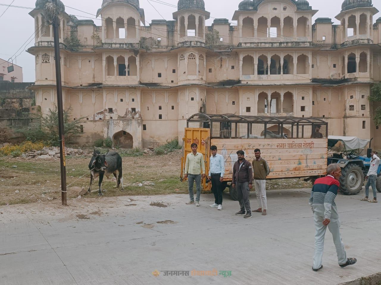 पशुओं को पकड़कर नंदीशाला पहुंचाया
