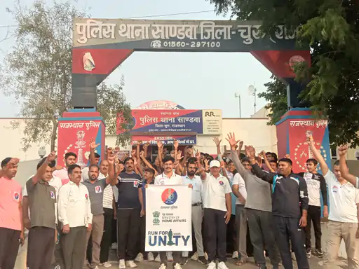 सांडवा पुलिस थाने में रन फॉर यूनिटी:सरदार पटेल की जयंती पर एकता का संदेश, बड़ी संख्या में दौड़े बच्चे