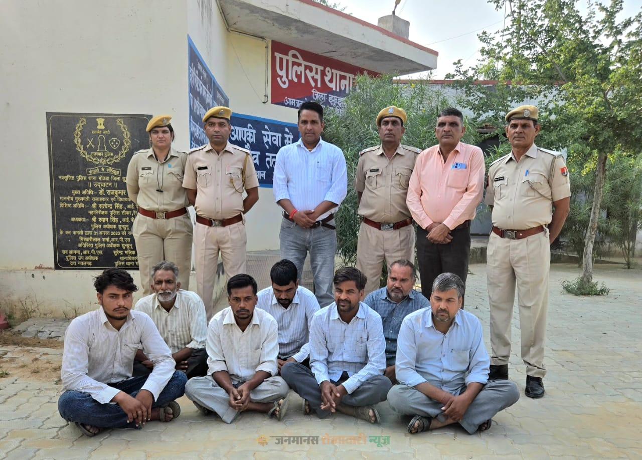 - 7 जने गिरफ्तार: मामले में गोठड़ा पुलिस ने विकास उर्फ बाजी मीणा (22) निवासी टोडपुरा, दीपक महाजन (37) निवासी खिरोड, कमल महाजन (40) निवासी खिरोड, दिनेश महाजन (30) पनलावा, बलारा (सीकर), दशरथ सिंह राजपूत (51) निवासी टोंक छिलरी गोठडा, गिरवर सिंह राजपूत (48) निवासी टोंक छिलरी गोठडा और भागीरथ सिंह राजपूत (45) निवासी टोंक छिलरी, गोठडा समेत कुल 7 जनों को गिरफ्तार किया है।