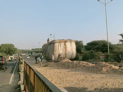 जयपुर-बीकानेर हाईवे पर चारे से भरी ट्रैक्टर-ट्रॉली पलटी:कई घंटे बाधित रहा ट्रैफिक, रूट डायवर्ट करना पड़ा; सड़क पर बिखरा चारा