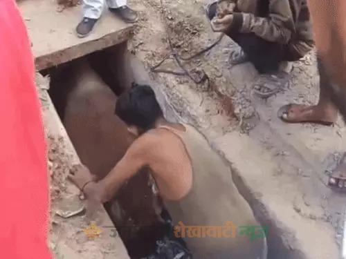 सरदारशहर : सरदारशहर के न्यू मार्केट में शुक्रवार दोपहर करीब 11 बजे एक गाय खुले नाले में गिर गई। कच्चा बस स्टैंड के पीछे स्थित इस बाजार में घटना के बाद हड़कंप मच गया। मौके पर मौजूद व्यापारियों और स्थानीय लोगों ने रस्सों की मदद से कड़ी मशक्कत कर गाय को सुरक्षित बाहर निकाला। इस दौरान बड़ी संख्या में लोग बचाव कार्य देखने के लिए जमा हो गए।