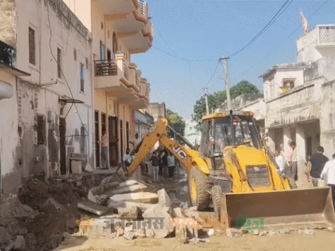 नेछवा : नेछवा कस्बे में सीसी रोड निर्माण के लिए प्रशासन ने अतिक्रमण हटाए। यह कार्रवाई जेसीबी की मदद से की गई। इस कार्रवाई के दौरान बड़ी संख्या में ग्रामीण मौके पर जमा हो गए। कुछ स्थानों पर प्रशासन को ग्रामीणों के हल्के विरोध का सामना भी करना पड़ा।इस मौके पर नेछवा उपखंड अधिकारी भावेश धनवत, तहसीलदार रामचंद्र गुर्जर, सार्वजनिक निर्माण विभाग के सहायक अभियंता, सरपंच प्रशासक सरिता देवी अग्रवाल और वार्ड पंच प्रहलाद राय अग्रवाल सहित पुलिस बल मौजूद रहा। इकट्ठे हुए ग्रामीणों ने प्रशासन की इस कार्रवाई का विरोध किया। उन्होंने आरोप लगाया कि प्रशासन नियमानुसार कार्रवाई नहीं कर रहा है। ग्रामीणों ने इस संबंध में सीकर जिला कलेक्टर से उचित कार्रवाई की मांग की है।