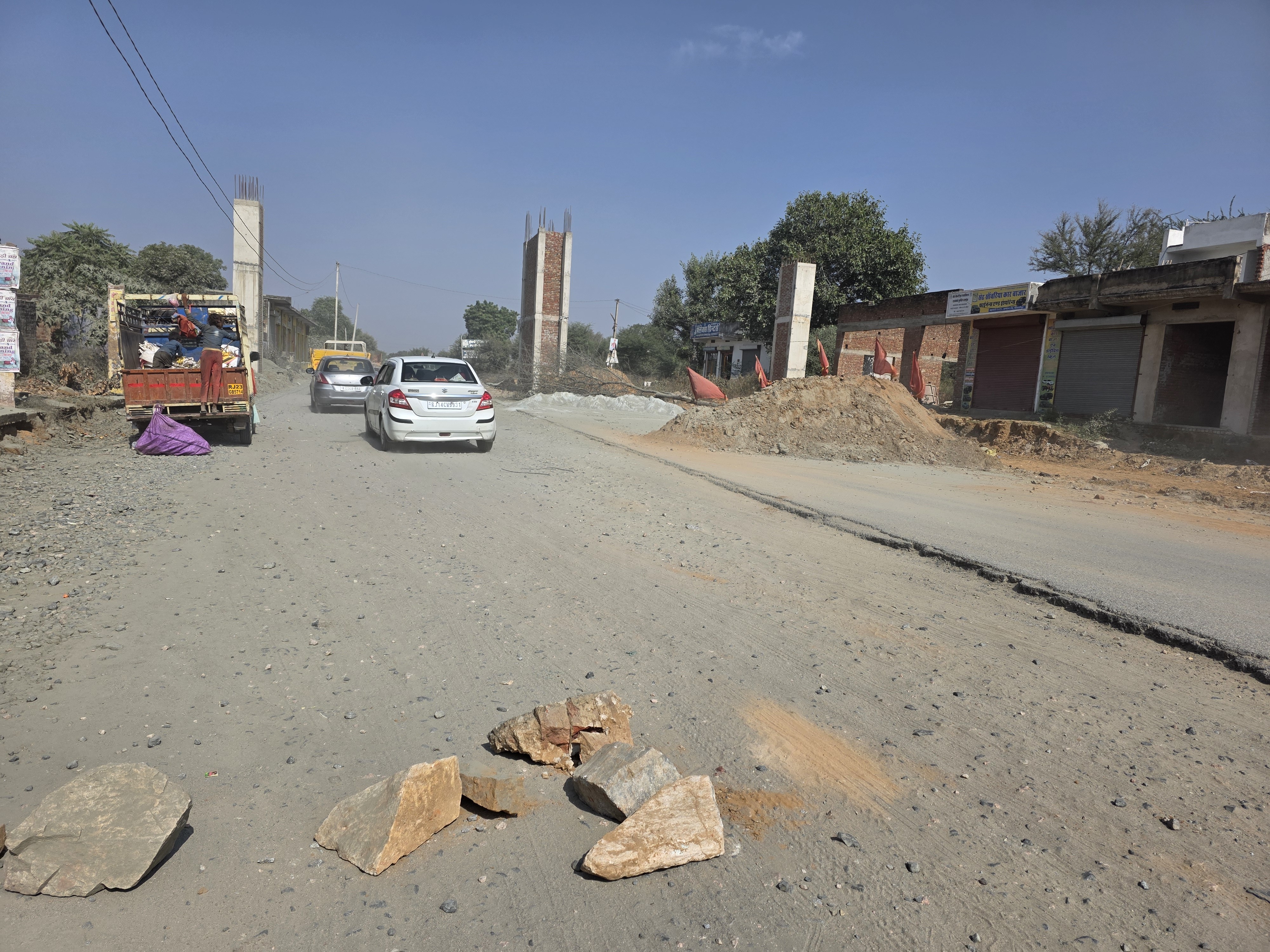 श्रीमाधोपुर : श्रीमाधोपुर शहर में ब्रह्मचारी मोड़ से गुर्जर की थड़ी तक स्टेट हाईवे पर फोरलेन सड़क निर्माण कार्य पिछले 20 दिनों से रुका हुआ है। इस कारण स्थानीय निवासियों और दुकानदारों को भारी परेशानी का सामना करना पड़ रहा है। सड़क के दोनों ओर खुदाई की गई है और बीच सड़क पर कंक्रीट व मिट्टी के ढेर लगे हैं, जिससे दुर्घटनाओं का खतरा बढ़ गया है। भारी वाहनों के गुजरने से लगातार धूल उड़ रही है, जिससे यात्रियों को बसों में चढ़ने-उतरने में दिक्कत हो रही है। तिराहा होने के कारण यहां सड़क दुर्घटनाओं की आशंका बनी हुई है।