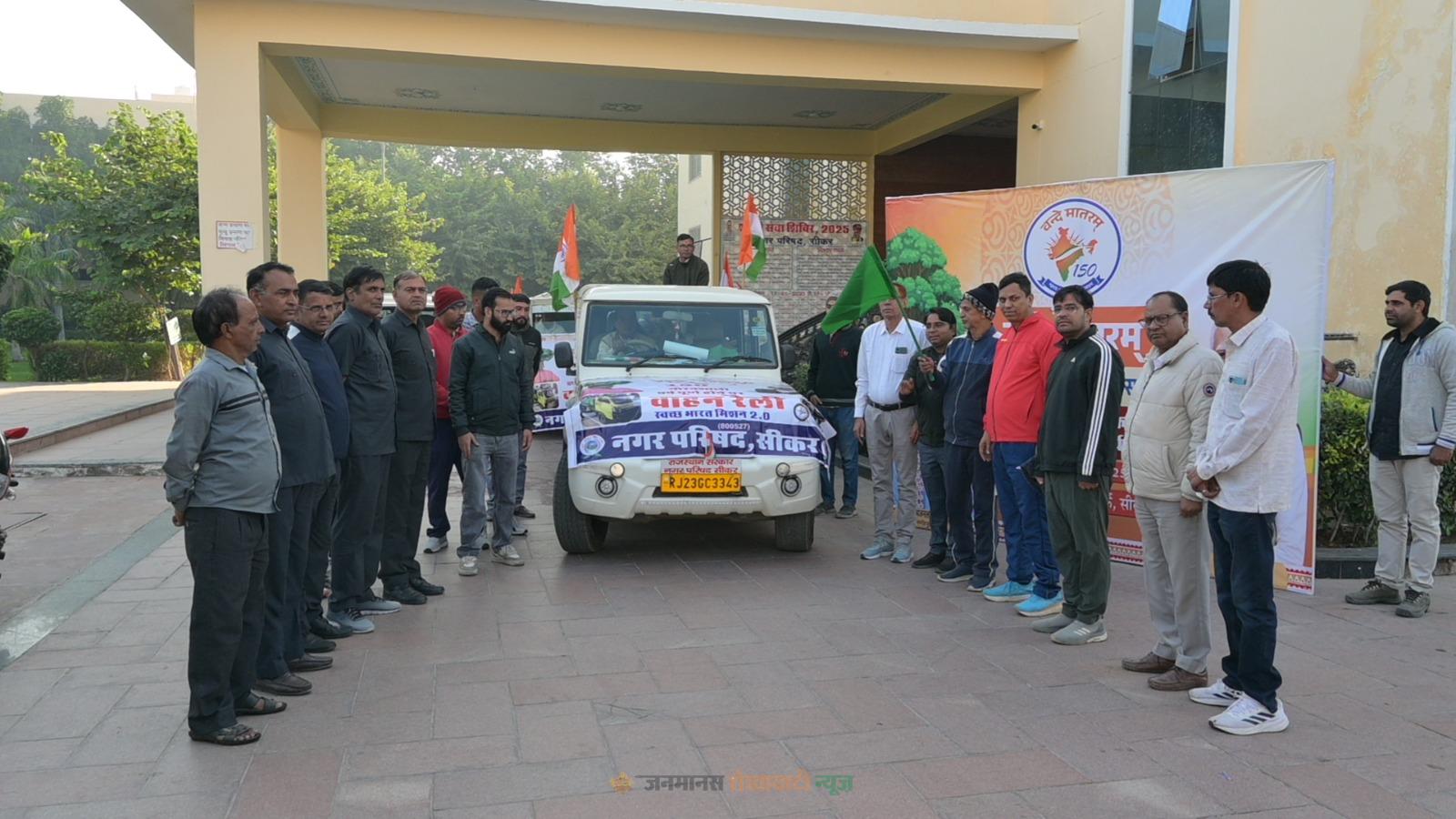 सीकर : नगर परिषद आयुक्त शशिकांत शर्मा ने बताया कि मंगलवार को राष्ट्रप्रेम और गर्व से ओत-प्रोत वातावरण में नगर परिषद सीकर द्वारा “वंदे मातरम् @150 वर्ष” के अवसर पर एक भव्य वाहन रैली का आयोजन किया गया। रैली का उद्देश्य राष्ट्रगीत वंदे मातरम् की अमर भावना को जन-जन तक पहुँचाना तथा देशभक्ति, स्वच्छता और एकता का संदेश देना रहा।