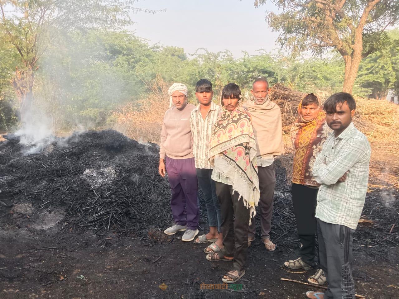डुमोली खुर्द में पशुओं के चारे में लगी आग:300 मण कडबी जली, किसान ने मुआवजे की मांग की