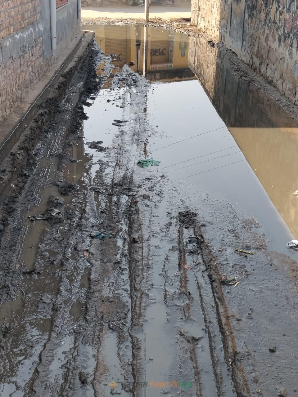 वार्ड 12 और 24 में नालियों के जाम होने से सड़कें बनी जलभराव का केंद्र