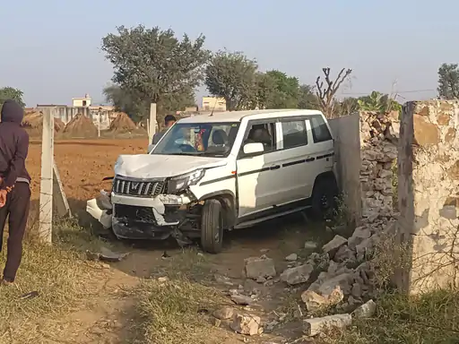 बेकाबू कार दीवार तोड़कर खेत में घुसी:गुहाला में हादसा, एयरबैग खुलने से चालक की जान बची