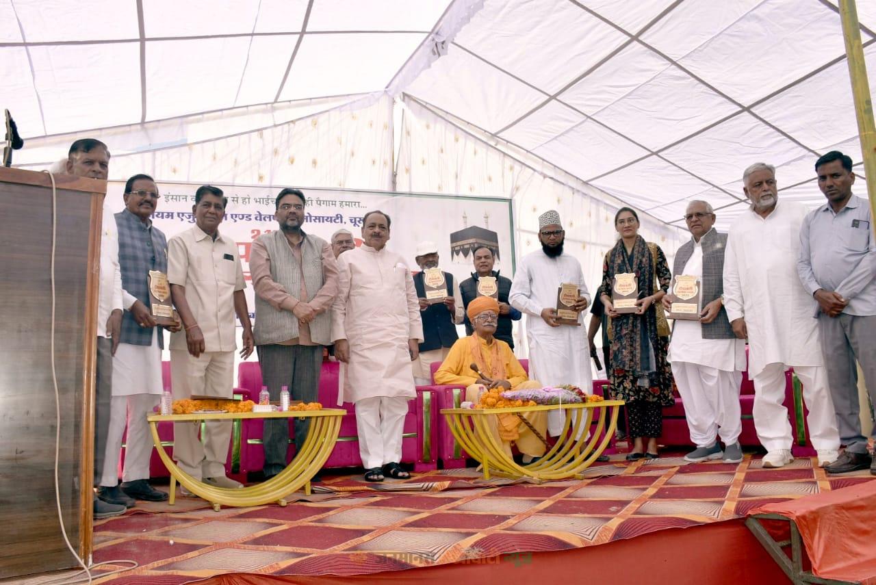 चूरू : जिला मुख्यालय पर शहर के ऐतिहासिक स्थल कोटड़ी रिसालदार में “कायम एजुकेशन एंड वेल्फेयर सोसायटी” के तत्वावधान में इक्कीसवां दीपावाली स्नेह मिलन समारोह गायत्री शक्ति पीठ के रामसिंह राठौड़ व मौलाना अनीश रज्जा के सानिध्य व वरिष्ठ कांग्रेस नेता रफीक मडे लिया के मुख्य आतिथ्य में उत्साह पूर्वक मनाया गया। शहर के सभी वर्गों के गणमान्य लोगों की उपस्थिति में उत्साह पूर्वक मनाए गए कार्यक्रम के शुभारंभ में समारोह के संयोजक रियाजत अली खान ने सभी लोगों का स्वागत करते हुए चूरू के लोगों के स्नेह भाव को रेखांकित किया। इस अवसर पर प्रो. सुरेंद्र सोनी ने भारत नाम की व्याख्या कहा कि भारत मेरा देश है, समस्त भारतवासी मेरे भाई बहन हैं जैसा भाव हर देशवासी के मन में होना चाहिए। गायत्री शक्ति पीठ के रामसिंह राठौड़ ने ऋग्वेद के मंत्र का उल्लेख करते हुए मानव मानव में एकता की बात कही।