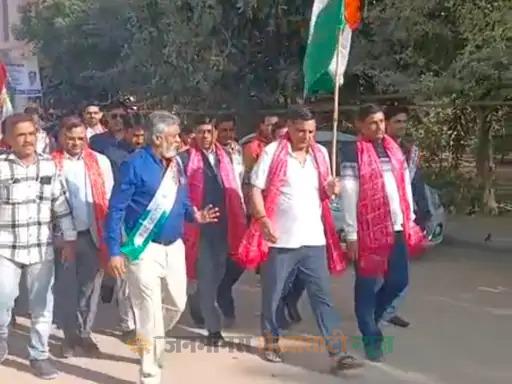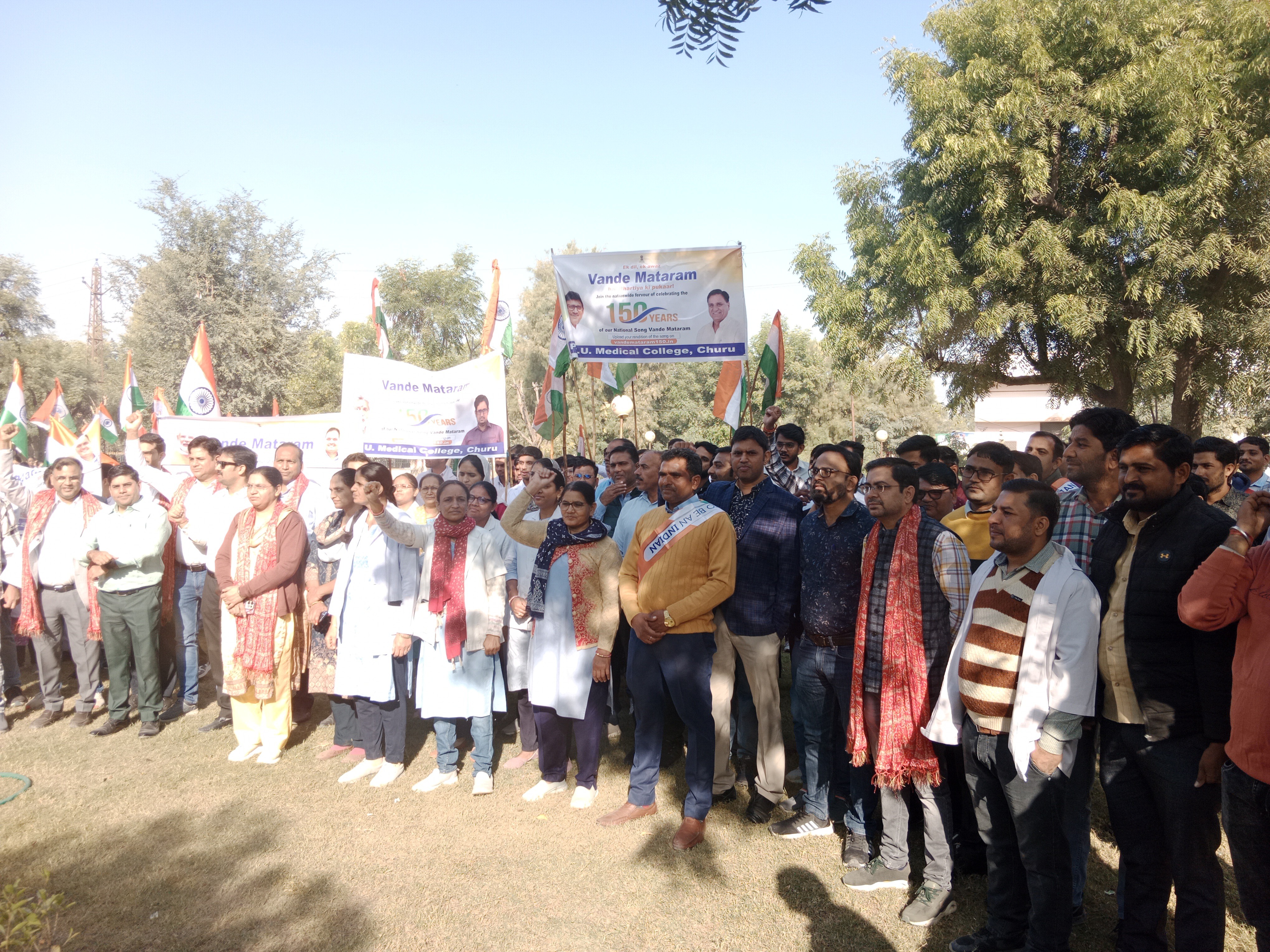 चूरू : चूरू में राष्ट्रगीत वंदे मातरम् के 150 वर्ष पूरे होने के उपलक्ष्य में शनिवार सुबह एक रैली निकाली गई। यह रैली मेडिकल कॉलेज से डीबी अस्पताल तक गई, जिसे विधायक हरलाल सहारण ने हरी झंडी दिखाकर रवाना किया। रैली का नेतृत्व मेडिकल कॉलेज प्रिंसिपल डॉ. एमएम पुकार, अस्पताल अधीक्षक डॉ. दीपक चौधरी और नर्सिंग कॉलेज प्रिंसिपल डॉ. दयानंद बुडानिया ने किया। इसमें डॉक्टर्स, नर्सिंग ऑफिसर, मेडिकल कॉलेज के छात्र और नर्सिंग छात्र शामिल हुए। प्रतिभागियों ने भारत माता जिंदाबाद के नारे लगाए।