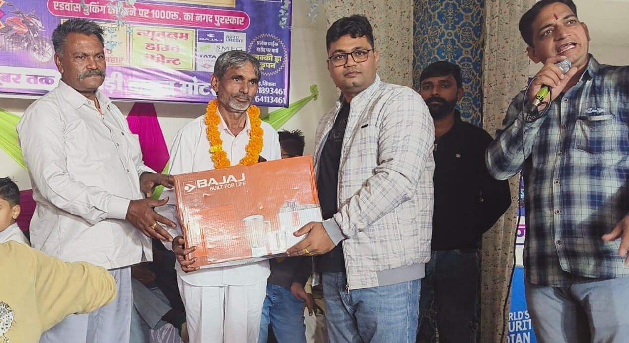 सिंघाना की बागड़ी बजाज एजेंसी में लक्की ड्रॉ का परिणाम घोषित : अनिल कुमार ने जीता प्रथम पुरस्कार, फ्रिज पाकर खिला चेहरा