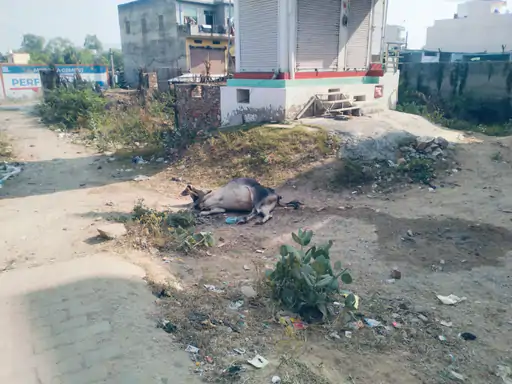 सिंघाना में थाने के सामने मृत पशु मिला:सफाई व्यवस्था को लेकर नगरपालिका की अनदेखी पर लोगों ने जताया रोष