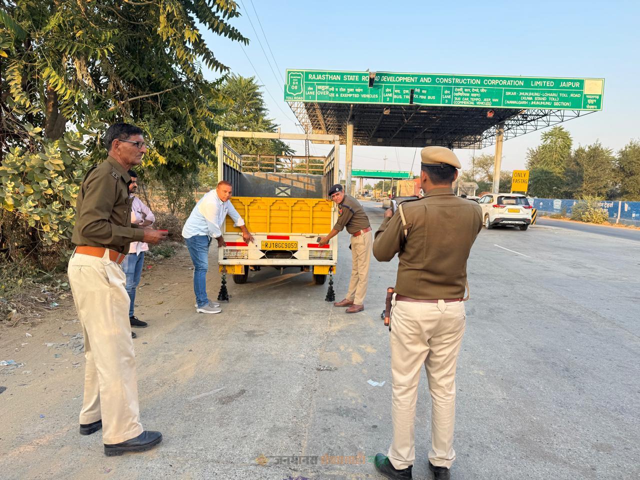 झुंझुनूं : परिवहन व पुलिस विभाग ने 17 नवंबर 2025 को संयुक्त रूप से सड़क सुरक्षा अभियान चलाया। अभियान के दौरान वाहन चालकों को जागरूक किया गया और लगभग 200 वाहनों पर रिफ्लेक्टर टेप लगाए गए। परिवहन विभाग ने कार्रवाई करते हुए 1 ओवरलोड वाहन, 3 बिना फिटनेस सहित कुल 10 वाहनों के चालान काटे। वहीं पुलिस विभाग ने एक लोकपरिवहन बस चालक और एक बल्कर चालक को शराब पीकर वाहन चलाने पर गिरफ्तार किया। अभियान में पुलिस उप अधीक्षक गोपाल सिंह ढाका, जिला परिवहन अधिकारी मोनू सिंह मीणा, परिवहन निरीक्षक रमेश कुमार यादव सहित 20 कार्मिक शामिल रहे।