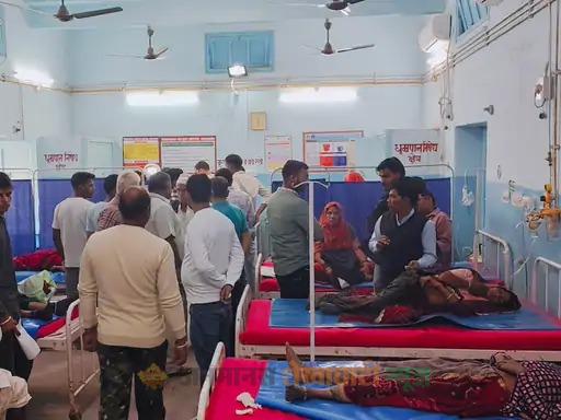 रतनगढ़ में NH-11 पर दो बसों की टक्कर:8 महिलाओं सहित 10 लोग घायल, प्राथमिक उपचार के बाद छुट्टी; ओवरटेक करने के प्रयास में हुआ हादसा