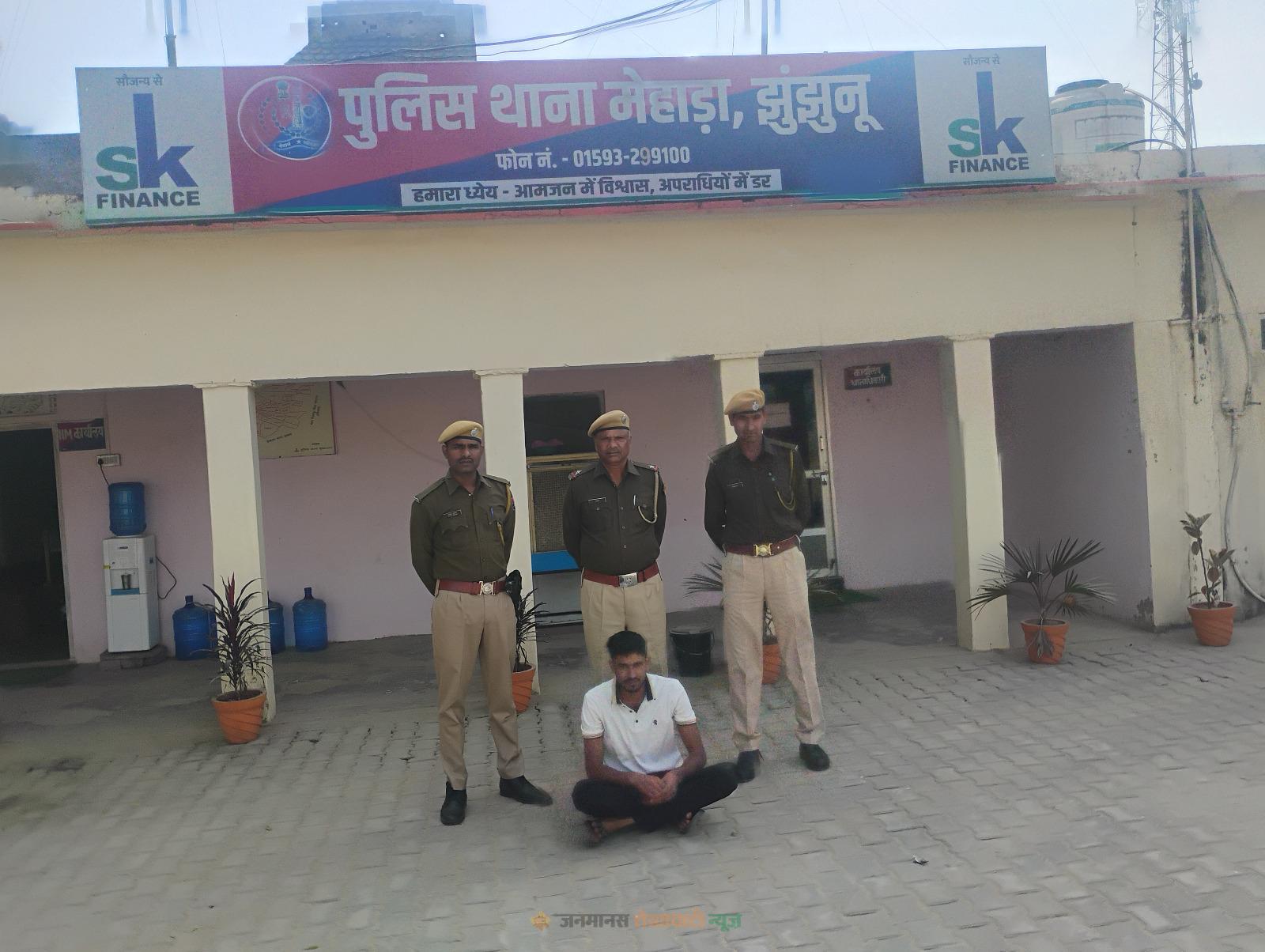 खेतड़ी : मेहाड़ा पुलिस ने अवैध हथियारों के खिलाफ कार्रवाई करते हुए एक युवक को पांच जिंदा कारतूस के साथ गिरफ्तार किया है। ये कार्रवाई बुधवार देर शाम को की गई, जिसमें पुलिस ने आरोपी के कब्जे से कारतूस बरामद किए। थानाधिकारी राममनोहर ठोलिया ने बताया कि गश्त के दौरान मुखबिर से सूचना मिली थी। इस पर एएसआई भोमाराम के नेतृत्व में पुलिस टीम त्यौंदा से मेहरों की ढाणी जाने वाले कच्चे रास्ते पर पहुंची। वहां एक युवक पुलिस टीम को देखकर पहाड़ी की तरफ भागने लगा।