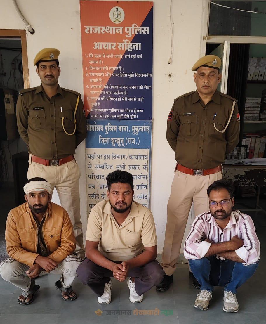 मुकुंदगढ़ :कस्बे में तोड़फोड़ और मारपीट के मामले में पुलिस ने तीन युवकों को गिरफ्तार किया है। यह मामला 21 नवंबर की घटना से जुड़ा है। थानाधिकारी ताराचंद के नेतृत्व में पुलिस टीम ने कार्रवाई करते हुए गोविंद (26), प्रीतम (30) और विक्रम मीणा उर्फ विक्की (35) को हिरासत में लिया। पुलिस ने आरोपियों से एक मोटरसाइकिल भी जब्त की है।